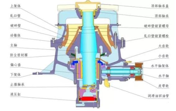 3)動(dòng)錐總成:主軸、動(dòng)錐軀體、軋臼壁;