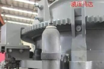通過(guò)液壓推手或液壓馬達(dá),調(diào)整調(diào)整帽,從而帶動(dòng)調(diào)整環(huán)在支撐套內(nèi)旋轉(zhuǎn)(定錐螺旋轉(zhuǎn)動(dòng)上下移動(dòng)),達(dá)到調(diào)整作用。這種調(diào)節(jié)方式的好處是排礦口容易鎖緊。